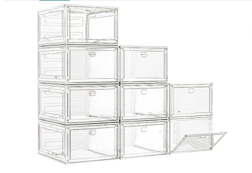 7 Code Large Clear Shoe Boxes Organizer(Thick Material)Stronger Shoe Box with Magnetic Door, Stackable Shoe Storage for Closet, Foldable Space-Saving