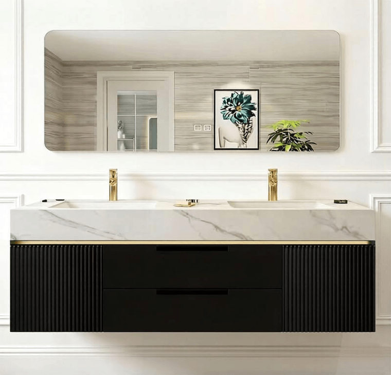 60" Premium Modern Bathroom Vanity with Single/Double Sink, LED Defog Mirror and Solid Wood Cabinet, Vanity and Mirror